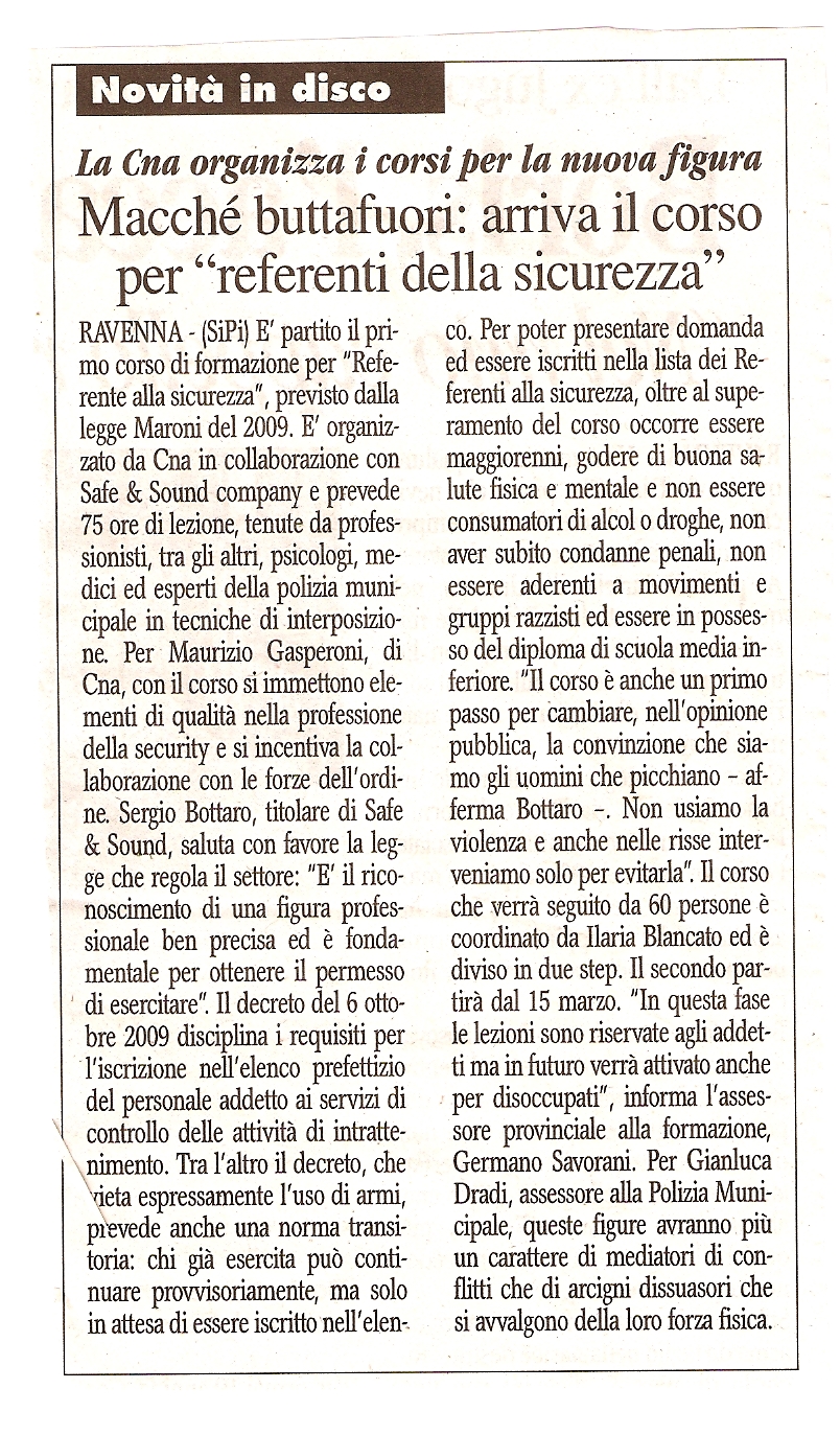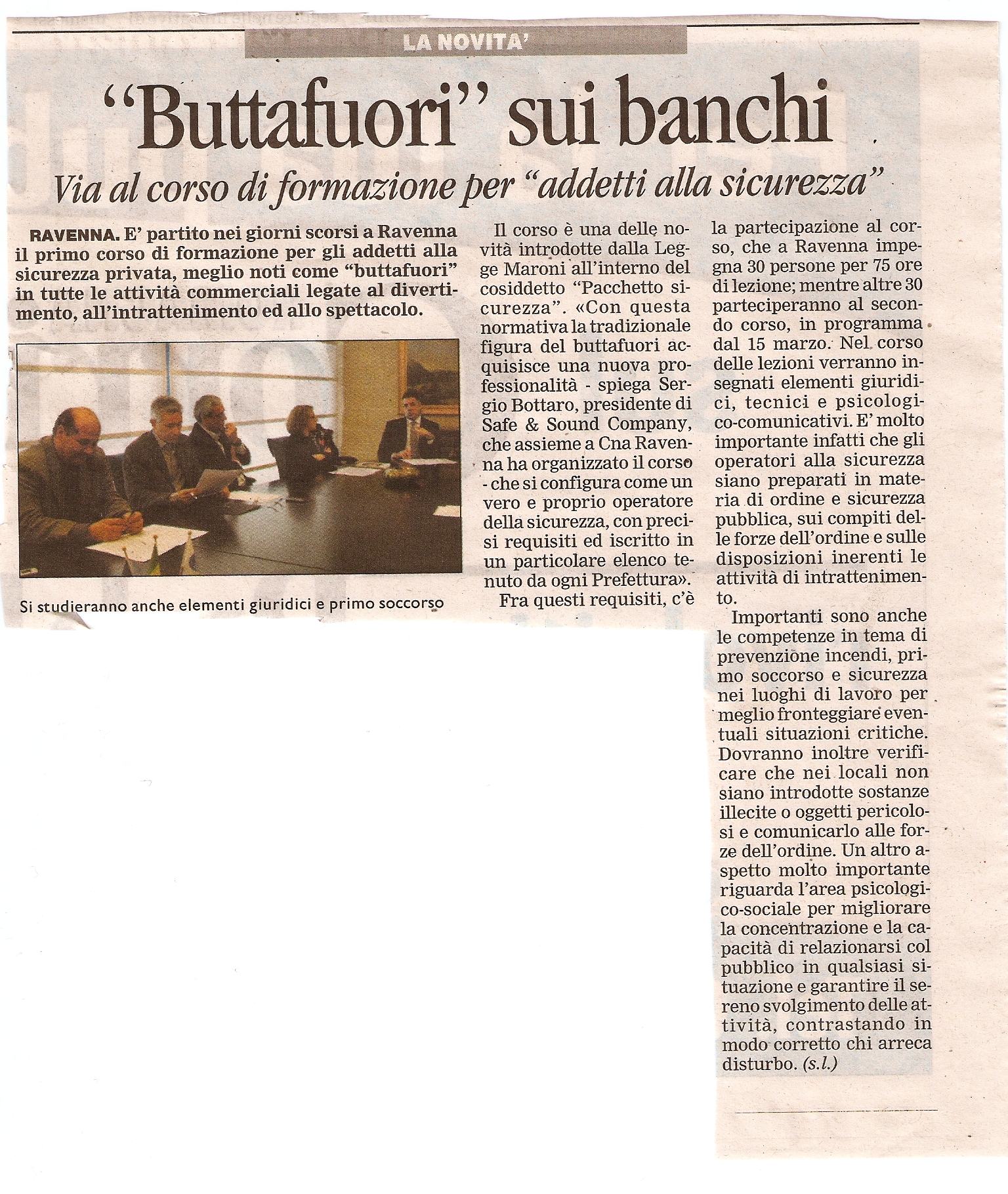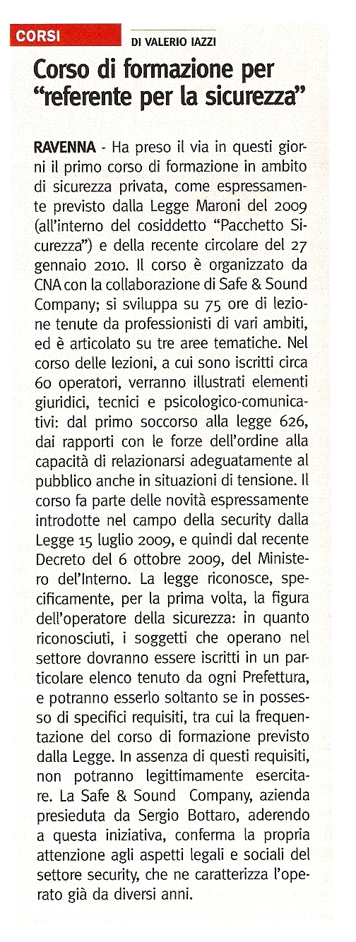 "Safe & Sound Company", società ravennate che fornisce servizi di sicurezza alla
