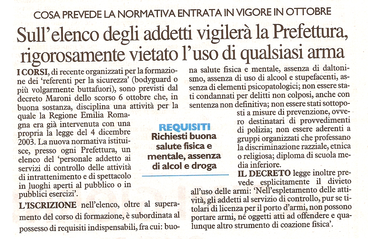 sicurezza. Purtroppo negli anni si è sempre parlato del "buttafuori" come uno
