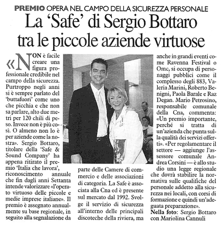 Alla "Safe & Sound" di Bottaro il premio "Italia che lavora".