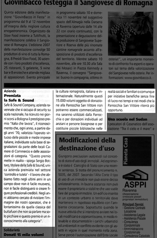 Ravenna. Un'azienda ravvenate premiata per il suo operato. La Safe & Sound